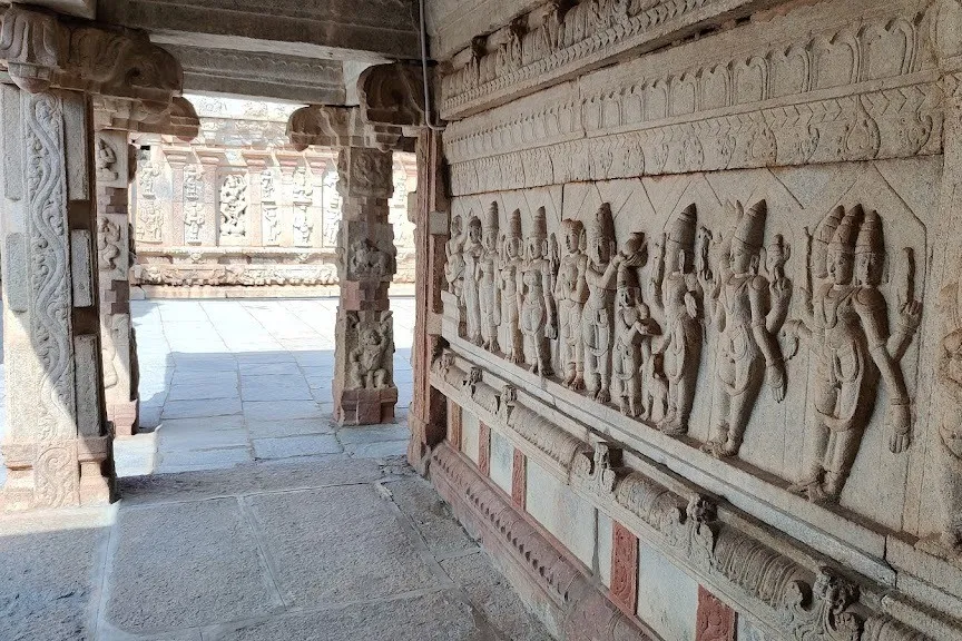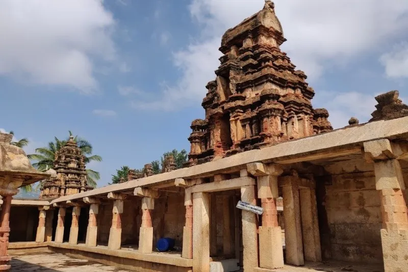 ಪ್ರಾಕಾರವು ಎರಡು ದೇವಿಯ ಗುಡಿಗಳನ್ನು ಹೊಂದಿದೆ. ವಸಂತ ಮಂಟಪ, ತುಲಾಭಾರಮಂಟಪ ಮತ್ತು ಚೌಕಾಕಾರದ ಮೆಟ್ಟಿಲು ಶೃಂಗಿ ತೀರ್ಥ ಕೊಳ. ಕಲ್ಯಾಣ ಮಂಟಪ ಮತ್ತು ಉತ್ತರದಲ್ಲಿ ಬೃಹತ್ ಮೆಟ್ಟಿಲುಗಳ ತೊಟ್ಟಿ ಇದೆ, ಇದು ಕ್ಲೋಸ್ಟರ್ ಗೋಡೆಯಿಂದ ಆವೃತವಾಗಿದೆ ಮತ್ತು ಪ್ರಾಕಾರ ಹೊಂದಿದೆ. ಎರಡು ಮಹಾದ್ವಾರಗಳು ಸಂಪೂರ್ಣ ಅಳತೆ 370 x 250 ಅಡಿಗಳು. ಚಿಕ್ಕಬಳ್ಳಾಪುರದಲ್ಲಿ ದೊರೆತ ತಾಮ್ರದ ಹಲಗೆಗಳು ಈ ದೇವಾಲಯವನ್ನು ಬನ ರಾಜ ವಿದ್ಯಾಧರನ ಪತ್ನಿ ರತ್ನಾವಳಿಯಿಂದ ನಿರ್ಮಿಸಲಾಗಿದೆ ಎಂದು ಹೇಳುತ್ತದೆ ಮತ್ತು ಕ್ರಿ.ಶ. 810 ರಲ್ಲಿ ಅದಕ್ಕೆ ಅನುದಾನವನ್ನು ದಾಖಲಿಸುತ್ತದೆ.