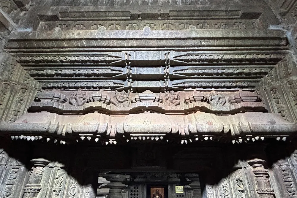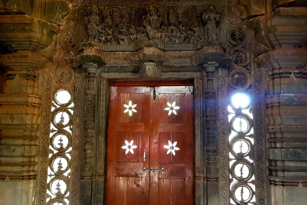 ದೇವಾಲಯದ ಮೂಲ ಬಾಗಿಲಿನಿಂದ ಒಳಗೆ ಪ್ರವೇಶಿಸಿದಾಗ ಕಾಣುವ ಸಭಾಂಗಣದ ದ್ವಾರವು ಸಮೃದ್ಧವಾಗಿ ಕೆತ್ತಲ್ಪಟ್ಟಿದ್ದು, ಅದರ ಮಧ್ಯದಲ್ಲಿ ಕುಳಿತಿರುವ ಜಿನನ ಶಿಲ್ಪ ಅಲಂಕರಿಸಲಾಗಿದೆ.
