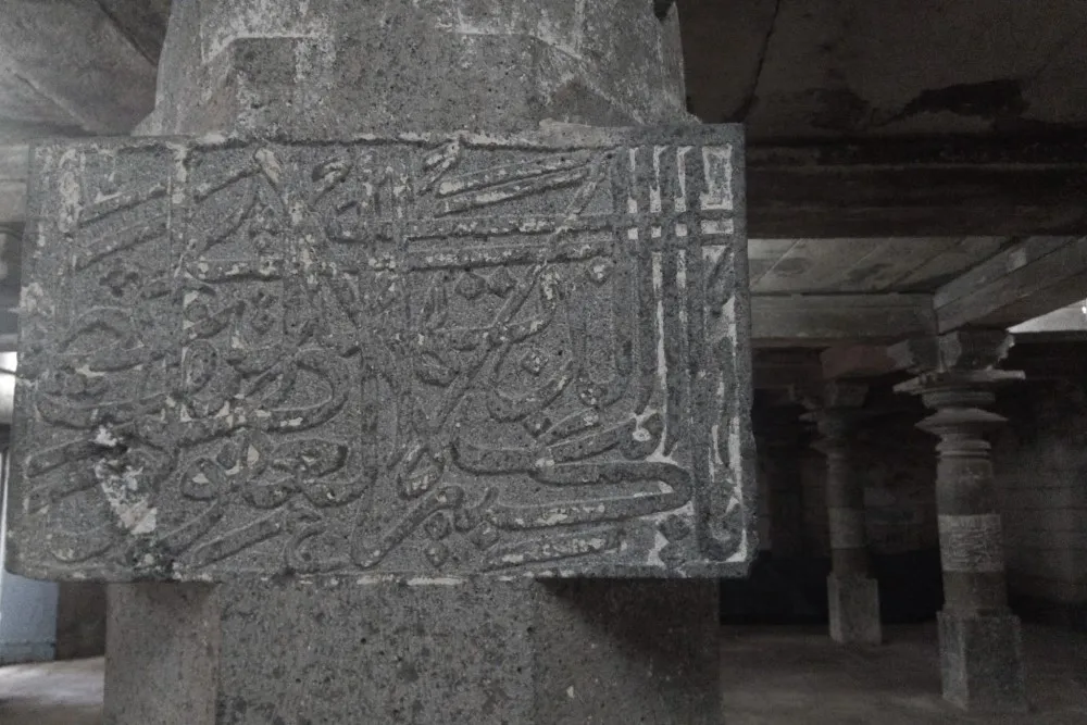 ಈ ಮಸೀದಿಗೆ ಮೇಲ್ಗಡೆ ಕೈಸಾಲೆ ಇದ್ದು ಇದನ್ನು ತಲುಪಲು ಮೆಟ್ಟಿಲುಗಳಿವೆ. ಮಸೀದಿಯ ಒಳಗಡೆ ಪ್ರಾರ್ಥನೆಗೆ ವಿಶಾಲವಾದ ಸ್ಥಳವಿದೆ. ಇಲ್ಲಿ ಅರೆಗಂಬ, ಕಮಾನುಗಳು ಮತ್ತು ಪರ್ಶಿಯನ್ ಭಾಷೆಯ ಶಾಸನಗಳಿವೆ. ಈ ಮಸೀದಿಯ ಒಳಗಡೆ ದೇವಾಲಯದ ನುಣುಪಾದ ಹಾಗೂ ದುಂಡಾದ ಕಂಬಗಳ ಅವಶೇಷಗಳಿದ್ದು ಅವು ಹಳಗನ್ನಡದ ಶಿಲಾ ಶಾಸನಗಳನ್ನು (ಕಿ.ಶ.1000 ಹನ1261) ಹೊಂದಿವೆ, ಇಲ್ಲಿಯ ಪರ್ಶಿಯನ್ ಶಾಸನ ಕುರಾನ್ ಉಲ್ಲೇಖನಗಳನ್ನು ತಿಳಿಸುತ್ತದೆ.