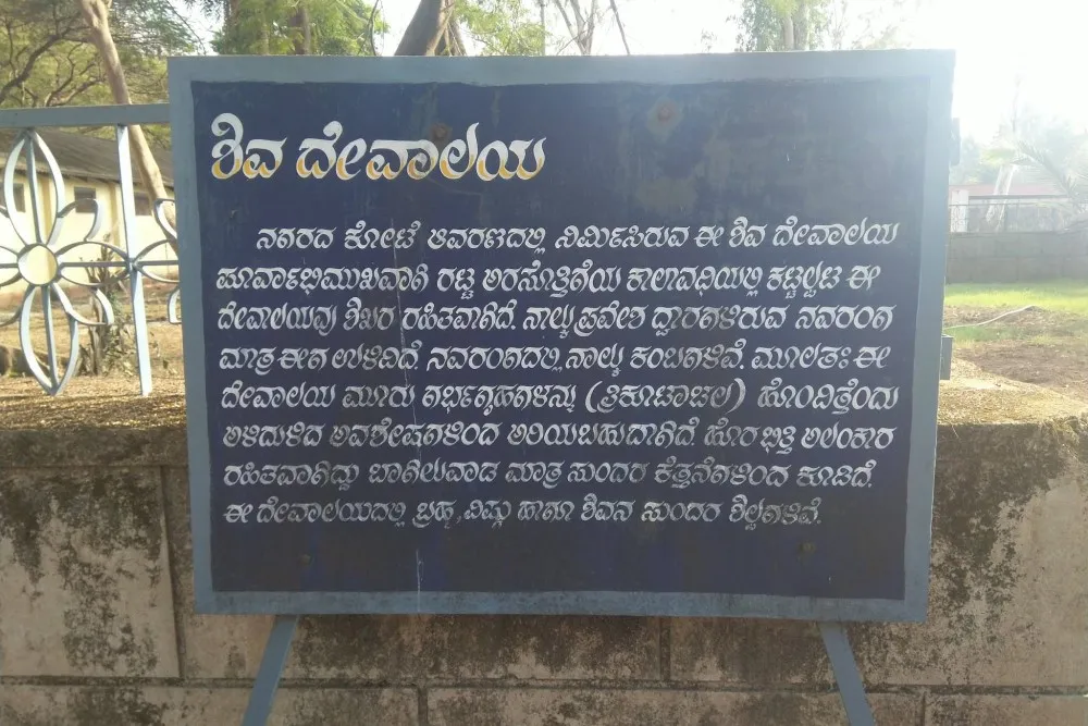 ಈ ಕೋಟೆ ಅವರಣದಲ್ಲಿ ನಿರ್ಮಿಸಿರುವ ಈ ಶಿವ ದೇವಾಲಯ ಪೂರ್ವಾಭಿಮುಖವಾಗಿ ರಟ್ಟ ಅರಸೊತ್ತಿಗೆಯ ಕಾಲಾವಧಿಯಲ್ಲಿ ಕಟ್ಟಲ್ಪಟ್ಟ ಈ ದೇವಾಲಯವು ಶಿಖರ ರಹಿತವಾಗಿದೆ. ನಾಲ್ಕು ಪ್ರವೇಶ ದ್ವಾರಗಳಿರುವ ನವರಂಗ ಮಾತ್ರ ಈಗ ಉಳಿದಿದೆ. ನವರಂಗದಲ್ಲಿ ನಾಲ್ಕು ಕಂಬಗಳಿವೆ. ಮೂಲತಃ ಈ ದೇವಾಲಯ ಮೂರು ಗರ್ಭಗೃಹಗಳನ್ನು (ತಿಕೂಟಾಟಲಿ) ಹೊಂದಿತ್ತೆಂದು ಅಳಿದುಳಿದ ಅವಶೇಷಗಳಿಂದ ಅರಿಯಬಹುದಾಗಿದೆ. ಹೊರ ಭಿತ್ತಿ ಅಲಂಕಾರ ರಹಿತವಾಗಿದ್ದು ಬಾಗಿಲವಾಡ ಮಾತ್ರ ಸುಂದರ ಕೆತ್ತನೆಗಳಿಂದ ಕೂಡಿದೆ. ಈ ದೇವಾಲಯದಲ್ಲಿ ಬ್ರಹ್ಮ, ವಿಷ್ಣು ಹಾಗೂ ಶಿವನ ಸುಂದರ ಶಿಲ್ಪಗಳಿವೆ.