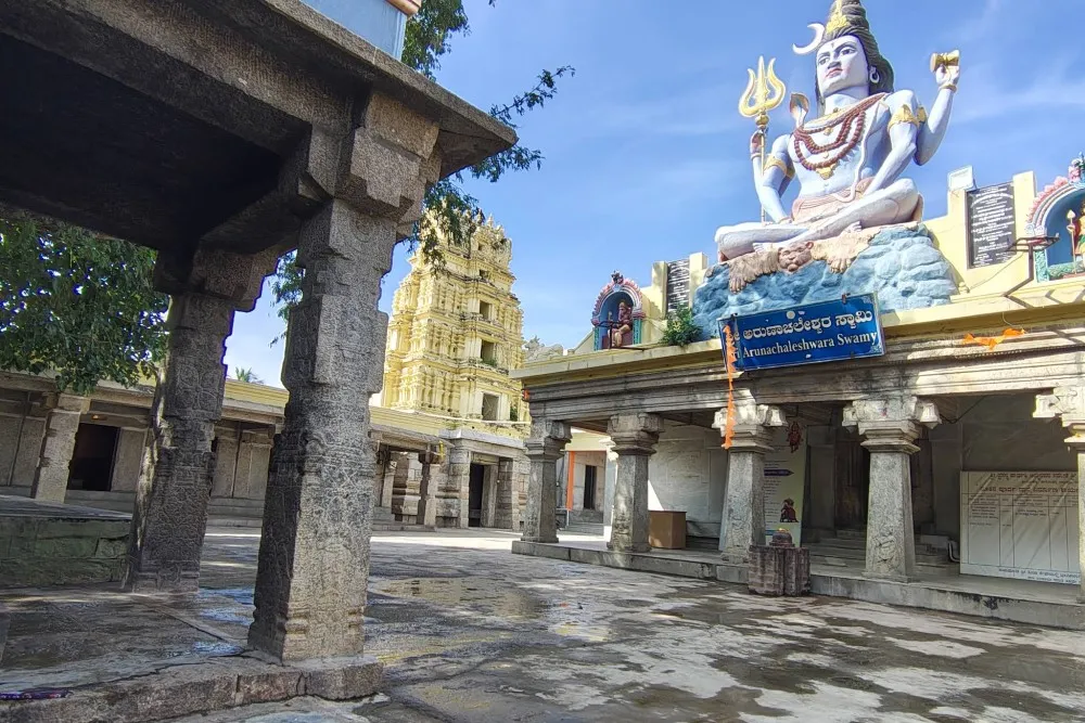 ಅರುಣಾಚಲೇಶ್ವರ ದೇವಾಲಯವು ವಿಜಯನಗರ ಶೈಲಿಯ ವಾಸ್ತುಶಿಲ್ಪದ ಉತ್ತಮ ಮಾದರಿಯಾಗಿದೆ. ಸೂಕ್ಷ್ಮವಾಗಿ ಕೆತ್ತಿದ ಕಂಬಗಳು ಮತ್ತು ಪ್ರಾಚೀನ ರಚನೆಗಳನ್ನು ಹೊಂದಿರುವ ಈ ದೇವಾಲಯವು ಮುಖಮಂಟಪ, ಗರ್ಭಗೃಹ ಮತ್ತು ಹೊರಗಿನ ಮಂಟಪವನ್ನು ಒಳಗೊಂಡಿರುವ ಬೃಹತ್ ರಚನೆಯಾಗಿದೆ. ಗರ್ಭಗೃಹವು ಮುಖ್ಯ ದೇವತೆ ಅರುಣಾಚಲೇಶ್ವರನನ್ನು ವಿಶಿಷ್ಟ ದ್ರಾವಿಡ ಶೈಲಿಯಲ್ಲಿ ಪ್ರತಿಷ್ಠಾಪಿಸಿದೆ. ವೈದ್ಯನಾಥೇಶ್ವರ, ಮರಳೇಶ್ವರ ಮತ್ತು ನಂಜುಂಡೇಶ್ವರ ಮುಂತಾದ ಇತರ ಶಿವಲಿಂಗಗಳಿವೆ.