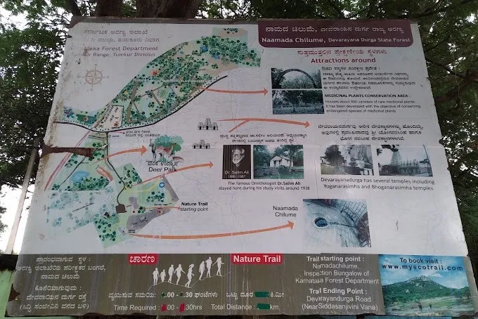 ರಾಮಾಯಣದ ಸಮಯದಲ್ಲಿ ರಾಮ, ಲಕ್ಷ್ಮಣ ಮತ್ತು ಸೀತೆ ಈ ದೇವರಾಯನದುರ್ಗ ಕಾಡಿನಲ್ಲಿ ಆಶ್ರಯ ಪಡೆದರು ಎಂಬ ಸ್ಥಳೀಯ ದಂತಕಥೆಯಿದೆ. ಒಮ್ಮೆ ರಾಮನ ಹಣೆಯ ಮೇಲೆ ತಿಲಕ ಇಡುವ ಅವಕಾಶವಿತ್ತು. ನಂತರ ಸೀತೆ ನೀರಿಗಾಗಿ ಸುತ್ತಲೂ ನೋಡಿದಳು ಆದರೆ ಅದು ಎಲ್ಲಿಯೂ ಸಿಗಲಿಲ್ಲ. ನಂತರ ರಾಮನು ಆ ಸ್ಥಳದಲ್ಲಿ ಬಾಣವನ್ನು ಹೊಡೆದು ಅದನ್ನು ಬಂಡೆಯ ಮೇಲೆ ಬಿಟ್ಟನು, ಬಾಣವು ರಂಧ್ರವನ್ನು ಚುಚ್ಚಿತು ಮತ್ತು ನೀರು ಅಲ್ಲಿಗೆ ಚಿಮ್ಮಿತು. ರಾಮನು ಆ ನೀರನ್ನು ತೆಗೆದುಕೊಂಡು ಹಣೆಯ ಮೇಲೆ ತಿಲಕವನ್ನು ಹಚ್ಚಿಕೊಂಡನೆಂದು ನಂಬಲಾಗಿದೆ, ಆದ್ದರಿಂದ ಈ ಸ್ಥಳಕ್ಕೆ ನಾಮದ ಚಿಲುಮೆ ಎಂದು ಹೆಸರು ಬಂದಿದೆ.